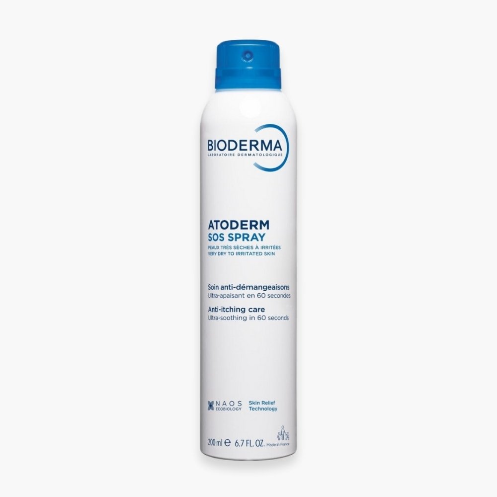 Spray anti-démangeaisons immédiat pour peaux sensibles, sèches à atopiques. Apaise en 60 secondes avec une efficacité de 6 heures. Texture ultra-légère, application 360° sans étaler. Convient à toute la famille dès la naissance.