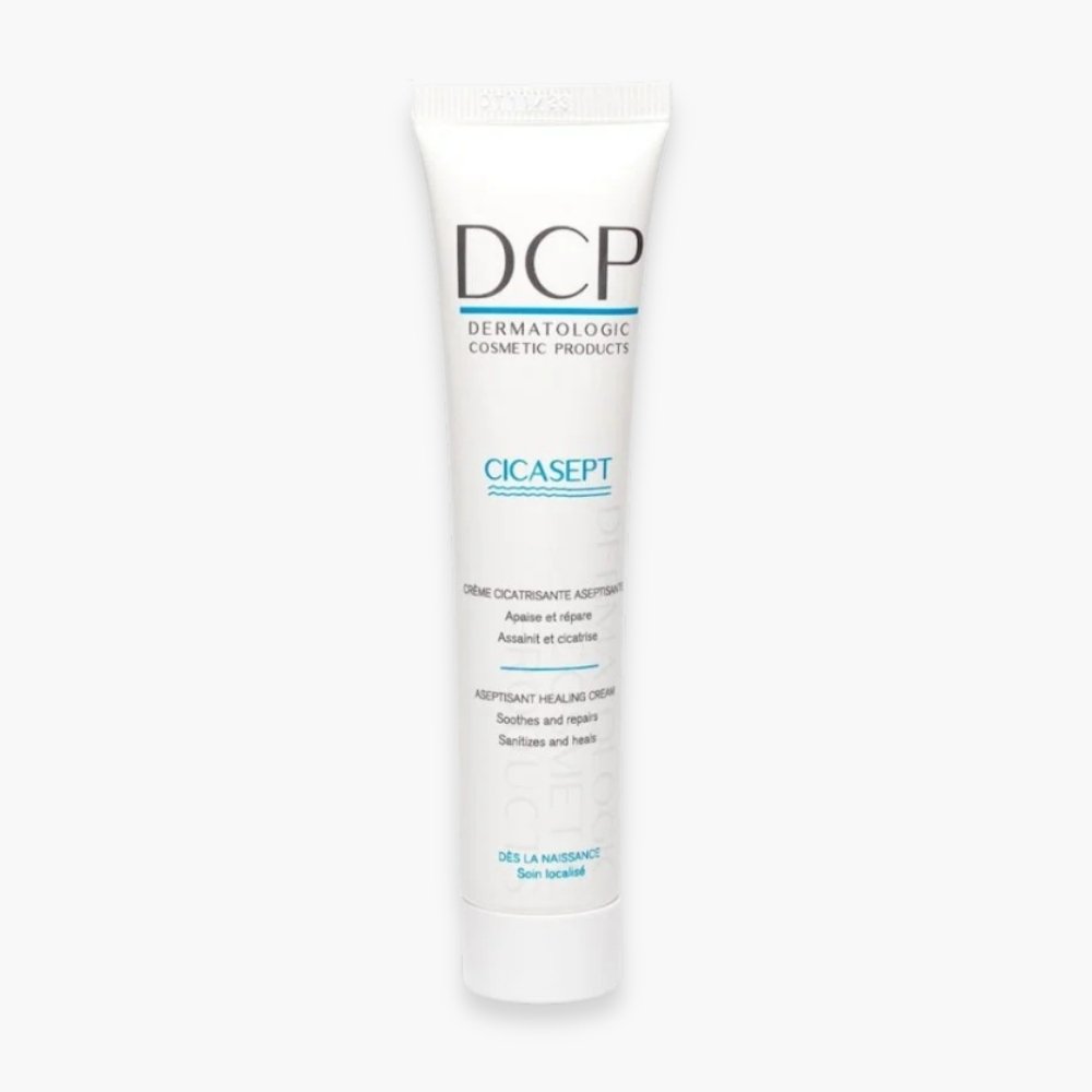 Découvrez DCP – CicaSept Crème Cicatrisante Aseptisante – 40ml au prix de 142 au Maroc.DCP Cicasept est une crème de traitement polyvalente, formulée pour la réparation rapide des peaux sensibles, réactives et fragilisées. Grâce à sa concentration en actifs cicatrisants, antiseptiques et apaisants, elle est particulièrement indiquée pour atténuer les signes des irritations sèches, des lésions superficielles et pour la récupération post-actes dermatologiques (laser, peeling, épilation). Ce soin apporte une réponse globale en agissant sur les quatre dimensions essentielles : hydratation, assainissement, apaisement et réparation de la barrière cutanée.La force de Cicasept réside dans la synergie de multiples principes actifs. La Centella asiatica et l’Huile de Ricin forment un puissant duo cicatrisant, favorisant la synthèse de collagène et d’élastine, essentiels à la régénération tissulaire en cas de plaies non suintantes, de brûlures légères ou d’eczéma. Pour prévenir la surinfection des zones lésées, la formule contient de la Chlorhexidine Undecylenate, un antiseptique à large spectre, mieux toléré que la Chlorhexidine classique, couplé à la Propolis aux vertus antiseptiques et antiradicalaires. Le Beurre de Karité, l’Huile d’Olive et l’Huile de Tournesol garantissent une action nourrissante et émolliente profonde. Enfin, le Panthénol (Provitamine B5) et la Lécithine renforcent l’action hydratante et apaisante. Cette crème réparatrice et aseptisante convient à tous les types de peaux et à toute la famille.BénéficesAccélère la cicatrisation et la réparation des lésions cutanées (plaies non suintantes, brûlures 1er et 2ème degré, crevasses, gerçures).Assainit et protège la zone fragilisée grâce à son action antiseptique à large spectre.Apaise les irritations, les rougeurs et l’inconfort cutané (coup de soleil, échauffements).Hydrate et nourrit intensément les peaux sèches et sensibles.Restaure et consolide la barrière cutanée.Idéale en soin post-actes (laser, chirurgie superficielle, épilation, peeling).Actifs clésCentella asiatica : Actif cicatrisant majeur qui stimule la synthèse de collagène et d’élastine.Chlorhexidine Undecylenate : Antiseptique, antimicrobien à large spectre pour prévenir l’infection.Huile de Ricin : Propriétés cicatrisantes, antibactériennes et adoucissantes.Propolis : Antiseptique, antiradicalaire et cicatrisante.Panthénol (Provitamine B5) : Hydratant et réparateur pour les peaux sensibles.Beurre de Karité, Huile d’Olive, Huile de Tournesol : Agents nourrissants et émollients.RésultatsLa peau est réparée plus rapidement et l’aspect des lésions est amélioré.Les rougeurs et les irritations sont apaisées.Le risque de surinfection est contrôlé.La peau retrouve son hydratation et sa douceur.Conseil d’utilisationAppliquer DCP Cicasept une à deux fois par jour.Utiliser sur la zone irritée ou sèche préalablement nettoyée (idéalement avec le Syndet Lipidik DCP).Masser délicatement pour faire pénétrer le soin.Poursuivre l’application jusqu’à complète réparation de la peau.