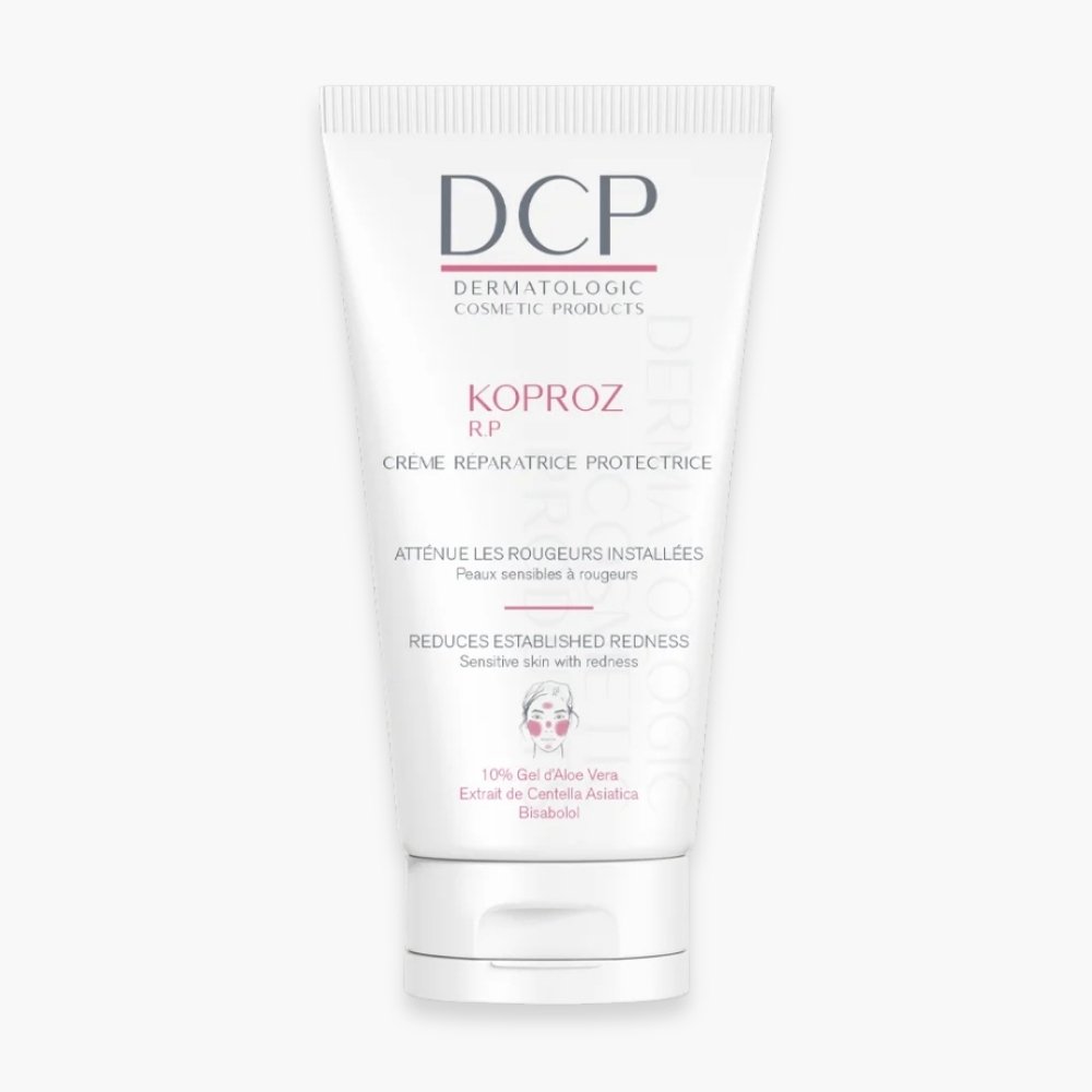 Découvrez DCP – Koproz RP Crème Réparatrice Protectrice – 70ml au prix de 120 au Maroc.DCP Koproz R.P Crème Réparatrice Protectrice est un soin quotidien spécifiquement formulé pour répondre aux besoins des peaux sensibles, sèches, présentant des rougeurs installées et des petits vaisseaux visibles (couperose). Ce soin est adapté pour apaiser, protéger et réduire l’intensité des rougeurs tenaces en agissant sur la réparation de la barrière cutanée et l’aspect des vaisseaux sanguins. Sa texture légère et non grasse assure une application confortable et une absorption rapide, idéale pour une utilisation quotidienne.Sa formule associe des actifs réparateurs et apaisants reconnus pour leur efficacité sur les peaux réactives. L’Extrait de Centella Asiatica est un ingrédient clé qui renforce la résistance de la peau face aux agressions externes. Elle est connue pour ses propriétés réparatrices et sa capacité à améliorer l’aspect de la microcirculation, contribuant ainsi à atténuer les rougeurs vasculaires. Le Bisabolol, un actif apaisant naturel, agit efficacement pour diminuer l’intensité des rougeurs et calmer les irritations. Ces actifs sont complétés par le Gel d’Aloe Vera (10 %), qui hydrate intensément et soulage immédiatement les irritations et les sensations d’échauffement. L’Extrait de Bardane vient renforcer l’action apaisante et hydratante, assurant à la peau sèche et sensible un confort durable et une meilleure protection face aux facteurs aggravants des rougeurs (température, vent, stress).BénéficesRéduit efficacement les rougeurs tenaces et apaisent les peaux sensibles.Répare et renforce la barrière cutanée pour une meilleure protection.Protège et améliore l’aspect des petits vaisseaux sanguins visibles (couperose).Hydrate intensément et soulage les irritations cutanées.Texture légère, non grasse, qui assure une application confortable et une absorption rapide.Convient aux peaux sèches à rougeurs installées.Actifs clésExtrait de Centella Asiatica : Favorise la réparation, renforce la résistance de la peau et améliore l’aspect vasculaire.Bisabolol : Actif apaisant naturel qui contribue à diminuer efficacement les rougeurs.Gel d’Aloe Vera (10 %) : Hydrate intensément et soulage les irritations.Extrait de Bardane : Contribue à l’action apaisante et hydratante.RésultatsDiminution visible de l’intensité des rougeurs et des petits vaisseaux.Peau apaisée, hydratée et plus confortable.Barrière cutanée renforcée.Teint plus uniforme et moins réactif.Conseil d’utilisationAppliquer la crème KOPROZ R.P matin et soir.Utiliser sur le visage et le cou, après avoir nettoyé délicatement la peau.Masser jusqu’à absorption complète.Sa formule non grasse est parfaite pour une utilisation quotidienne.