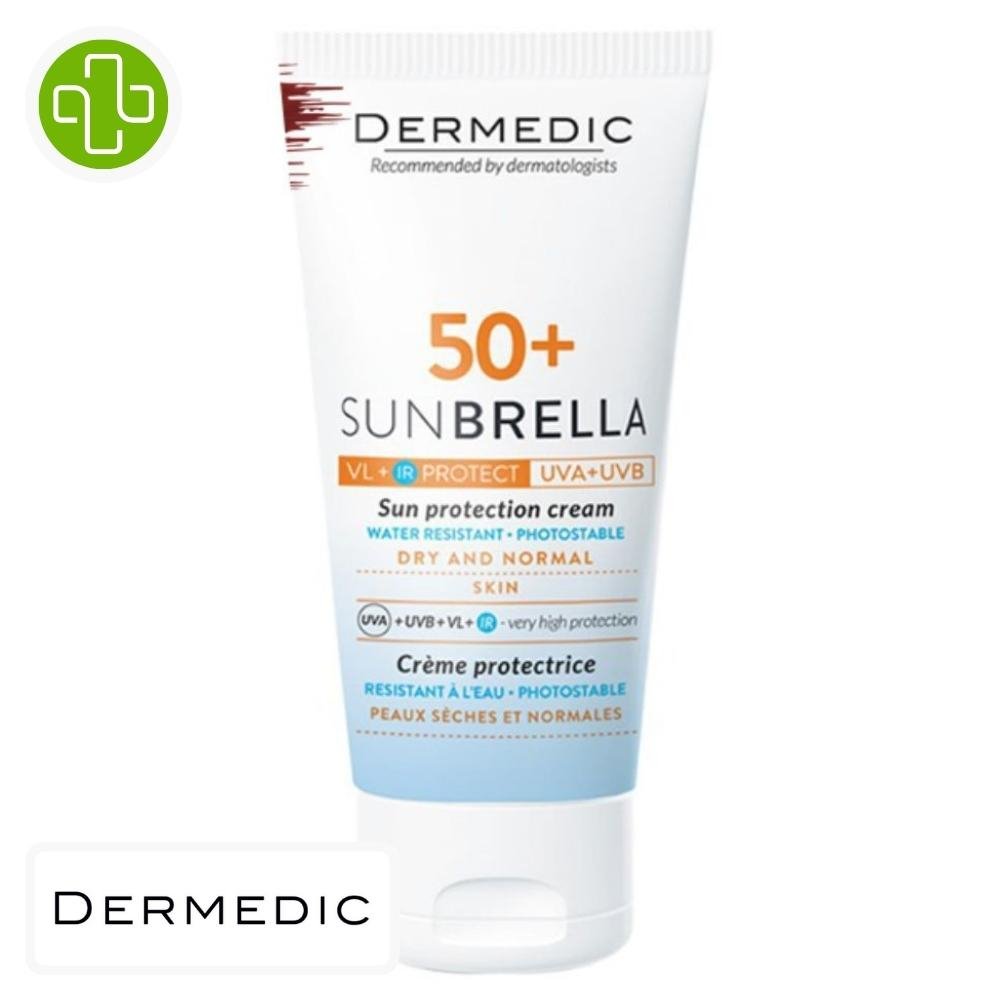 Découvrez DERMEDIC – Sunbrella Crème Solaire SPF50+ Peau Normale À Sèche – 50ml au prix de 196 au Maroc.Dermedic Sunbrella Ecran SPF50+ est une crème solaire spécialement formulée pour les peaux sèches à normales.Voici ce qu’elle offre :Protection élevée contre les rayons UV : Cette crème solaire offre une protection efficace et durable contre les rayons UVA, UVB, VL (visible light) et IR (infrarouge) avec un indice de protection solaire SPF50+. Elle protège ainsi la peau des dommages causés par l’exposition au soleil, aidant à prévenir les coups de soleil et le vieillissement prématuré de la peau.Hydratation intense : Sa formule légère et facile à appliquer offre une hydratation optimale de la peau. Elle aide à prévenir la sécheresse cutanée souvent provoquée par l’exposition prolongée au soleil, laissant ainsi la peau douce et souple.Photostable et étanche : La crème solaire est photostable, ce qui signifie qu’elle conserve son efficacité même après une exposition prolongée au soleil. De plus, elle est étanche, offrant une protection continue même après la baignade ou la transpiration.Hypoallergénique : Formulée pour minimiser les risques d’allergies, cette crème solaire est hypoallergénique, ce qui la rend adaptée même aux peaux sensibles.En appliquant Dermedic Sunbrella Ecran SPF50+ uniformément sur votre peau sèche à normale au moins 15 minutes avant l’exposition au soleil, vous bénéficierez d’une protection solaire efficace et d’une hydratation intense. N’oubliez pas de renouveler l’application après la baignade ou la transpiration pour maintenir une protection continue tout au long de votre exposition au soleil. Profitez du plein air en toute confiance en sachant que votre peau est protégée et hydratée.Conseils d’applicationAppliquer uniformément au moins 15 minutes avant l’exposition au soleil : Avant de vous exposer au soleil, appliquez généreusement Dermedic Sunbrella Ecran SPF50+ sur votre peau au moins 15 minutes avant l’exposition.Assurez-vous de couvrir toutes les parties exposées de votre corps, y compris le visage, le cou, les bras et les jambes.Renouveler l’application plusieurs fois lors de l’exposition au soleil : Pendant votre exposition au soleil, il est crucial de renouveler fréquemment l’application de la crème solaire. Réappliquez-la toutes les deux heures, surtout après avoir nagé, transpiré ou vous être essuyé avec une serviette.Même les crèmes solaires résistantes à l’eau perdent leur efficacité avec le temps et nécessitent une réapplication régulière pour maintenir une protection adéquate.En suivant ces instructions, vous pouvez assurer une protection solaire optimale pour votre peau.N’oubliez pas que l’utilisation régulière et correcte de la crème solaire est essentielle pour protéger votre peau des rayons UV nocifs.Profitez du plein air en toute sécurité en prenant soin de votre peau et en évitant les dommages causés par le soleil.