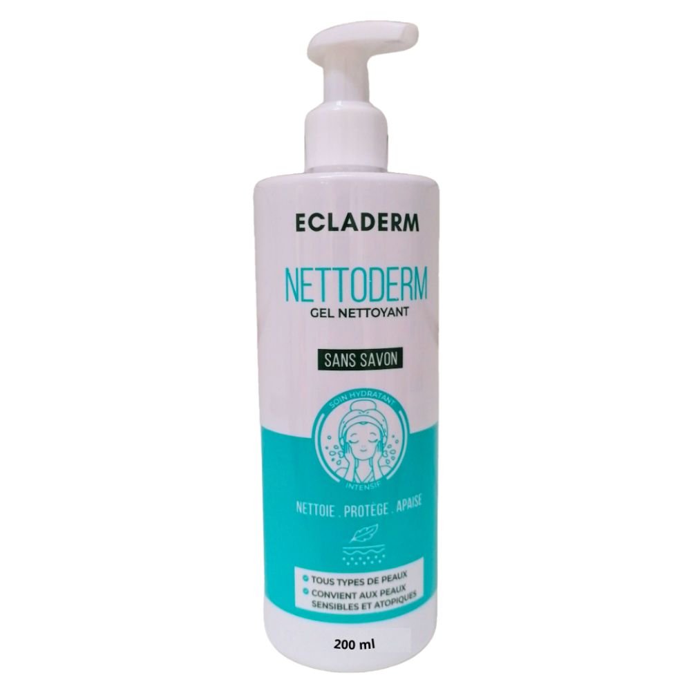 Découvrez ECLADERM – Nettoderm Gel Nettoyant Sans Savon – 200ml au prix de 120 au Maroc.Découvrez notre gel nettoyant visage infusé d’eau de rose et d’extraits de plantes, une formule douce qui purifie votre peau en éliminant les impuretés quotidiennes. Offrez à votre peau une expérience de nettoyage agréable pour révéler une peau propre, fraîche et éclatante.Conseils d’application :Commencez par vous laver soigneusement les mains pour garantir une hygiène optimale.Mouillez votre visage avec de l’eau chaude pour ouvrir les pores de la peau.Déposez une petite noisette de gel nettoyant dans le creux de vos mains.Emulsionnez le gel en le frottant délicatement entre vos mains.Appliquez le gel sur l’ensemble de votre visage en effectuant des mouvements circulaires doux.Assurez-vous de couvrir toutes les zones, en évitant le contour des yeux.Rincez abondamment à l’eau tiède jusqu’à ce que le produit soit complètement éliminé.Terminez en séchant votre visage avec une serviette propre et douce.Adoptez ces étapes simples pour intégrer notre gel nettoyant à votre routine quotidienne, et laissez votre peau rayonner de fraîcheur et de vitalité.