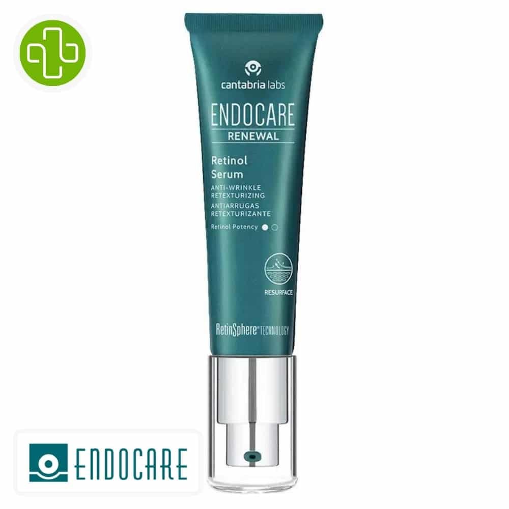 ENDOCARE RENEWAL Retinol Serum est un sérum anhydre formulé pour améliorer les signes globaux du vieillissement cutané. Ce traitement contient 0,2 % de rétinol pur, encapsulé grâce à la RetinSphere® Technology, permettant une retexturation et un renouvellement épidermique efficaces. Il est conçu pour réduire l’apparence des rides et ridules, uniformiser la texture de la peau et améliorer sa luminosité. Testé sous contrôle dermatologique.BénéficesAméliore les signes globaux du vieillissement cutané.Réduit visiblement les ridules et les rides.Unifie la texture de la peau.Améliore l’apparence et la luminosité de la peau.Favorise la fermeté de la peau.Actifs clésRétinol pur (0,2 %): Actif de référence en dermatologie pour son action sur le renouvellement cellulaire et la réduction des signes de l’âge. Il est ici formulé en micro-éponges via la RetinSphere® Technology pour une libération progressive.Acide hyaluronique: Agent hydratant qui contribue à maintenir l’hydratation de la peau et à réduire l’apparence des rides.Niacinamide: Ingrédient aux propriétés anti-inflammatoires et éclaircissantes, aidant à unifier le teint et à améliorer la texture de la peau.Bisabolol: Actif apaisant qui contribue à réduire les irritations et les rougeurs.Vitamine C: Antioxydant qui aide à protéger la peau contre les dommages causés par les radicaux libres et à améliorer l’éclat du teint.Conseils d’utilisationAppliquer le sérum sur une peau propre et sèche.Utiliser le produit le soir.Éviter le contour des yeux.Il est recommandé de commencer par une application progressive, en espaçant les utilisations, afin d’évaluer la tolérance de la peau au rétinol.En cas d’irritation, espacer les applications ou interrompre l’utilisation.Utiliser une protection solaire pendant la journée.