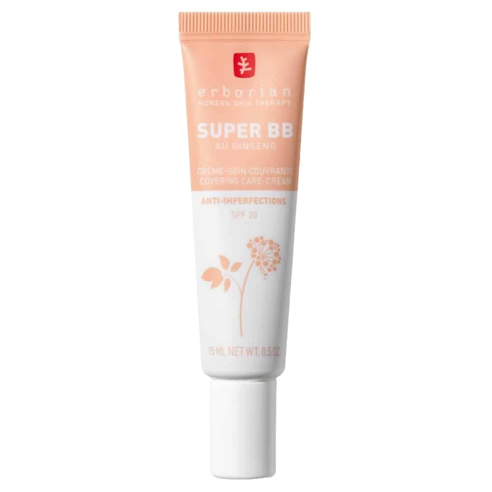 SUPER BB est une crème de teint-soin hybride, plus couvrante que la BB crème originale, conçue pour unifier le teint et agir sur les imperfections. Elle révèle une « peau de bébé » sans effet de matière, alliant maquillage et soin pour une action ciblée.BénéficesCamoufle efficacement les imperfections, rougeurs et taches pigmentaires.Offre une haute couvrance avec un fini satiné naturel et une texture légère.Rend la peau instantanément plus lisse et hydratée.Réduit visiblement les imperfections telles que boutons, pores et points noirs.Assure une protection solaire avec un SPF 20 grâce à des filtres 100% minéraux.Actifs clésComplexe Ginseng Blanc: Composé d’extraits de racine de ginseng blanc, de réglisse, d’igname sauvage, de prêle et de fruit de kigelia, il est connu pour son action protectrice, lissante, hydratante et antioxydante, renforçant la fonction barrière cutanée et apaisant la peau.Niacinamide: Un actif puissant qui agit au cœur de la formule pour réduire visiblement les imperfections.Huile de graines de Jojoba: Aide à prévenir la déshydratation de la peau, la nourrit et l’adoucit.Résultats86% des volontaires déclarent avoir moins d’imperfections (boutons, points noirs) après 1 mois d’utilisation.93% des volontaires déclarent que le produit couvre immédiatement les imperfections, rougeurs et taches pigmentaires.87% des volontaires trouvent que le produit a un fini naturel.Conseils d’utilisationCommencez par appliquer un soin de jour.Si vous souhaitez une très longue tenue, appliquez ensuite une base de maquillage.Appliquez une noisette de Super BB sur l’ensemble du visage.Vous pouvez moduler la couvrance en fonction de la quantité de produit appliquée.Précautions d’emploiTesté sous contrôle dermatologique.Non comédogène.Contient du methyl trimeticone, dont la classification est due à ses possibles effets néfastes sur l’environnement, mais ne constitue aucun danger pour la santé humaine dans les conditions classiques d’utilisation.