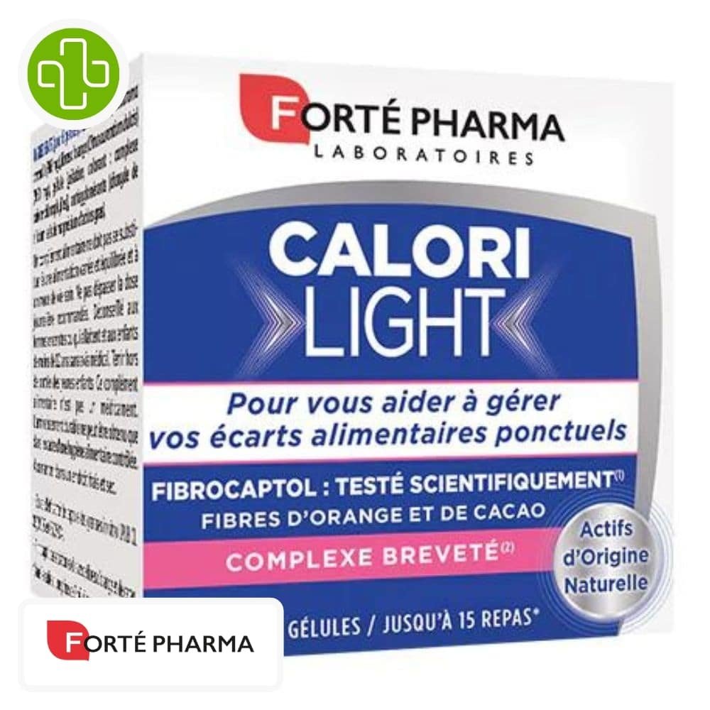 CaloriLight de Forté Pharma est un complément alimentaire conçu pour aider à gérer les écarts alimentaires occasionnels. Sa formule exclusive contient du Fibropal, un complexe breveté de fibres d’orange et de cacao. Ces fibres contribuent à la capture des graisses et au ralentissement de la digestion, favorisant ainsi le contrôle des calories et un effet de satiété.