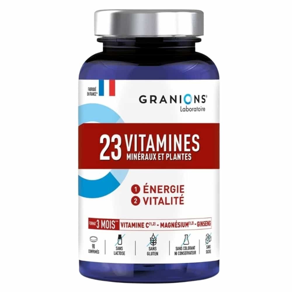 Le complément alimentaire 23 Vitamines Minéraux et Plantes est formulé pour aider à réduire la fatigue et soutenir l’énergie et la vitalité. Sa composition inclut des vitamines, des minéraux et des extraits de plantes, tels que le ginseng et le poivre noir, pour une meilleure assimilation des nutriments. Formule sans lactose, gluten, colorant, conservateur ni sucre.