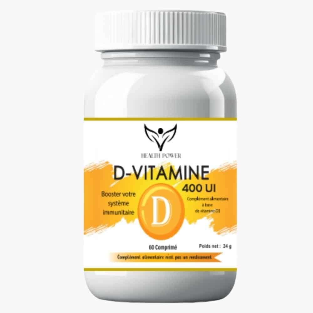 La D-Vitamine de HEALTHPOWER est un complément essentiel formulé pour soutenir plusieurs fonctions vitales de l’organisme. Grâce à sa concentration en Vitamine D3, elle joue un rôle crucial dans l’absorption du calcium et du phosphore, éléments fondamentaux pour la solidité des os et des dents, ainsi que pour le maintien d’une fonction musculaire optimale. Ce produit est également un allié précieux pour le système immunitaire, contribuant à renforcer les défenses naturelles du corps.BénéficesSoutien Osseux et Dentaire : Favorise l’absorption et l’utilisation du calcium et du phosphore, essentiels pour la minéralisation et la robustesse des os et des dents.Renforcement Immunitaire : Participe activement au bon fonctionnement du système de défense de l’organisme, aidant à maintenir une immunité normale.Maintien Musculaire : Contribue à une fonction musculaire saine, essentielle pour la mobilité et la vitalité quotidienne.Actifs clésVitamine D3 (400 UI) : Forme active de la vitamine D, indispensable pour de multiples processus biologiques, notamment le métabolisme du calcium.RésultatsOssature et dentition renforcées grâce à une meilleure assimilation du calcium.Système immunitaire plus résistant face aux agressions extérieures.Fonction musculaire préservée pour une meilleure performance physique.Conseils d’utilisationPrendre 1 comprimé par jour.Il est recommandé de le prendre avec un repas contenant des matières grasses pour optimiser son absorption.