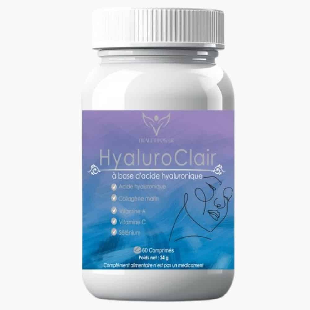 Hyaluroclair est une solution nutri-cosmétique avancée conçue pour celles et ceux qui souhaitent retrouver une peau rayonnante, hydratée et unifiée de manière durable. Sa formule repose sur une synergie d’actifs rigoureusement sélectionnés pour leur action sur la structure cutanée. L’Acide Hyaluronique, véritable éponge moléculaire, aide à maintenir l’eau au cœur des tissus pour un effet repulpant immédiat, tandis que la Vitamine C stimule la synthèse de collagène et protège les cellules contre le stress oxydatif responsable du teint terne. Enrichi en extraits de plantes reconnus pour leurs vertus clarifiantes, Hyaluroclair aide à réguler l’apparence des taches et à affiner le grain de peau. Ce traitement In&Out agit là où les crèmes ne peuvent pas toujours pénétrer, offrant une réponse globale pour une chevelure et une peau pleines de vitalité.BénéficesHydratation profonde et durable des couches internes de la peau.Action anti-âge : aide à lisser les ridules et à repulper l’épiderme.Effet clarifiant : unifie le teint et ravive la luminosité naturelle.Protection antioxydante contre le vieillissement prématuré.Renforce la souplesse et l’élasticité cutanée.Ingrédients clésAcide Hyaluronique : Capte l’eau pour maintenir l’hydratation et le volume de la peau.Vitamine C : Antioxydant majeur qui booste l’éclat et favorise la formation de collagène.Extraits végétaux clarifiants : Aident à homogénéiser le teint et à réduire les imperfections.Minéraux essentiels : Contribuent au maintien d’une peau normale et saine.RésultatsTeint visiblement plus lumineux et moins fatigué dès les premières semaines.Peau plus souple, douce et mieux hydratée.Réduction de l’aspect des petites taches pigmentaires.Conseils d’utilisationPrendre 1 à 2 comprimés par jour avec un grand verre d’eau, de préférence au moment du petit-déjeuner.Cure recommandée de 3 mois pour des résultats optimaux et durables.Ne pas dépasser la dose journalière recommandée.Conserver dans un endroit frais et sec, à l’abri de la lumière.Tenir hors de portée des jeunes enfants.Ce complément doit être utilisé dans le cadre d’un mode de vie sain et d’une alimentation équilibrée.
