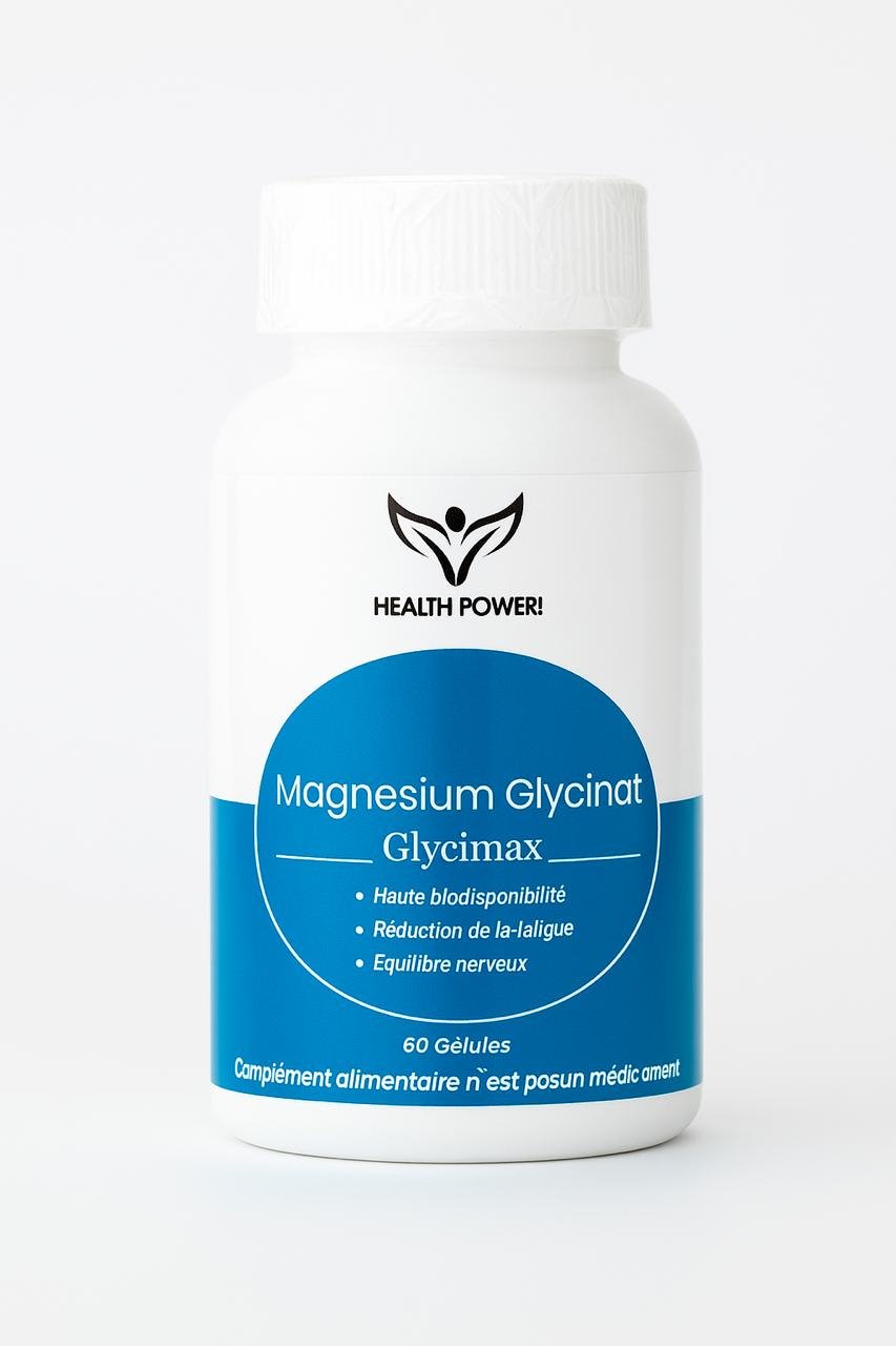 Magnesium Glycinate est un complément alimentaire formulé pour apporter une source de magnésium hautement assimilable par l’organisme. Le glycinate de magnésium est reconnu pour sa bonne tolérance digestive et son absorption optimisée, permettant de bénéficier pleinement des bienfaits du magnésium. Ce complément est conçu pour soutenir la relaxation, améliorer la qualité du sommeil et contribuer au fonctionnement normal du système nerveux et musculaire. Il est particulièrement indiqué en cas de fatigue, de stress ou de troubles du sommeil.BénéficesFavorise le sommeil et la détente.Soutient la fonction musculaire et réduit les crampes.Contribue à réduire la fatigue et le stress.Soutient le fonctionnement normal du système nerveux.Actifs clésMagnésium Glycinate (300mg): Forme de magnésium liée à la glycine, un acide aminé. Cette liaison améliore l’absorption du magnésium et minimise les désagréments gastro-intestinaux. Le magnésium est un minéral essentiel impliqué dans de nombreuses fonctions biologiques, notamment la contraction musculaire, la transmission nerveuse et la production d’énergie.Vitamine B6 (Souvent ajoutée): La vitamine B6 contribue au fonctionnement normal du système nerveux, à la réduction de la fatigue et au métabolisme énergétique normal. Elle agit en synergie avec le magnésium pour optimiser ses effets sur le stress et le sommeil.Conseils d’utilisationPrendre 1 à 2 gélules par jour.De préférence, prendre les gélules le soir pour favoriser la détente et le sommeil.À intégrer dans le cadre d’une alimentation équilibrée et d’un mode de vie sain.