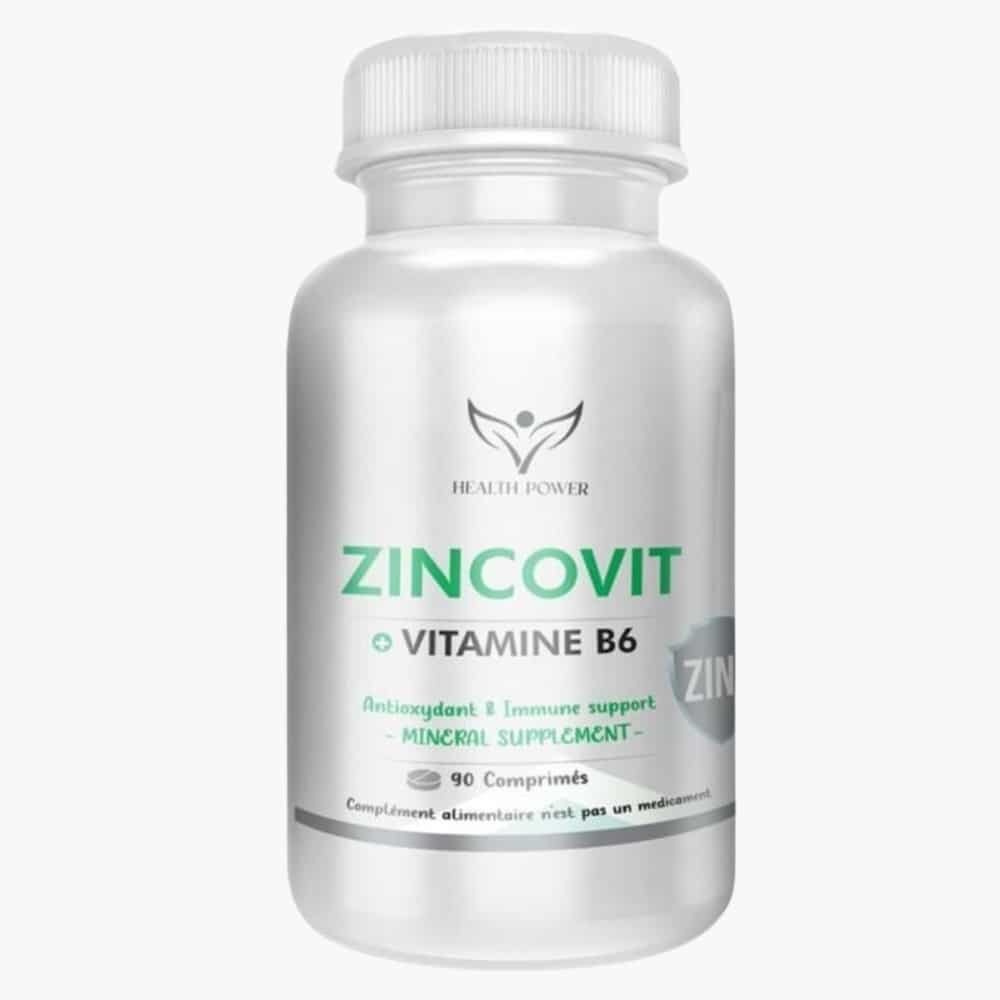 ZincoVit et Vitamine B6 est un complément alimentaire conçu pour soutenir l’immunité et le métabolisme. Il associe deux nutriments essentiels, le zinc et la vitamine B6, qui jouent des rôles cruciaux dans divers processus biologiques. Ce complément est formulé pour contribuer au maintien d’une peau saine, de cheveux forts et d’ongles résistants, tout en participant activement à la protection des cellules contre le stress oxydatif. Il est disponible en pharmacie et parapharmacie au Maroc.BénéficesRenforcement du système immunitaire.Protection contre le stress oxydatif.Contribution au métabolisme normal des protéines et des graisses.Maintien de la santé de la peau, des cheveux et des ongles.Actifs clésZinc : Oligo-élément indispensable au bon fonctionnement de plus de 200 enzymes. Il joue un rôle vital dans le soutien des défenses de l’organisme et la protection cellulaire.Vitamine B6 : Contribue à la régulation de l’activité hormonale et au métabolisme énergétique.Conseils d’utilisationPrendre 1 comprimé par jour.Avaler le comprimé avec un verre d’eau.