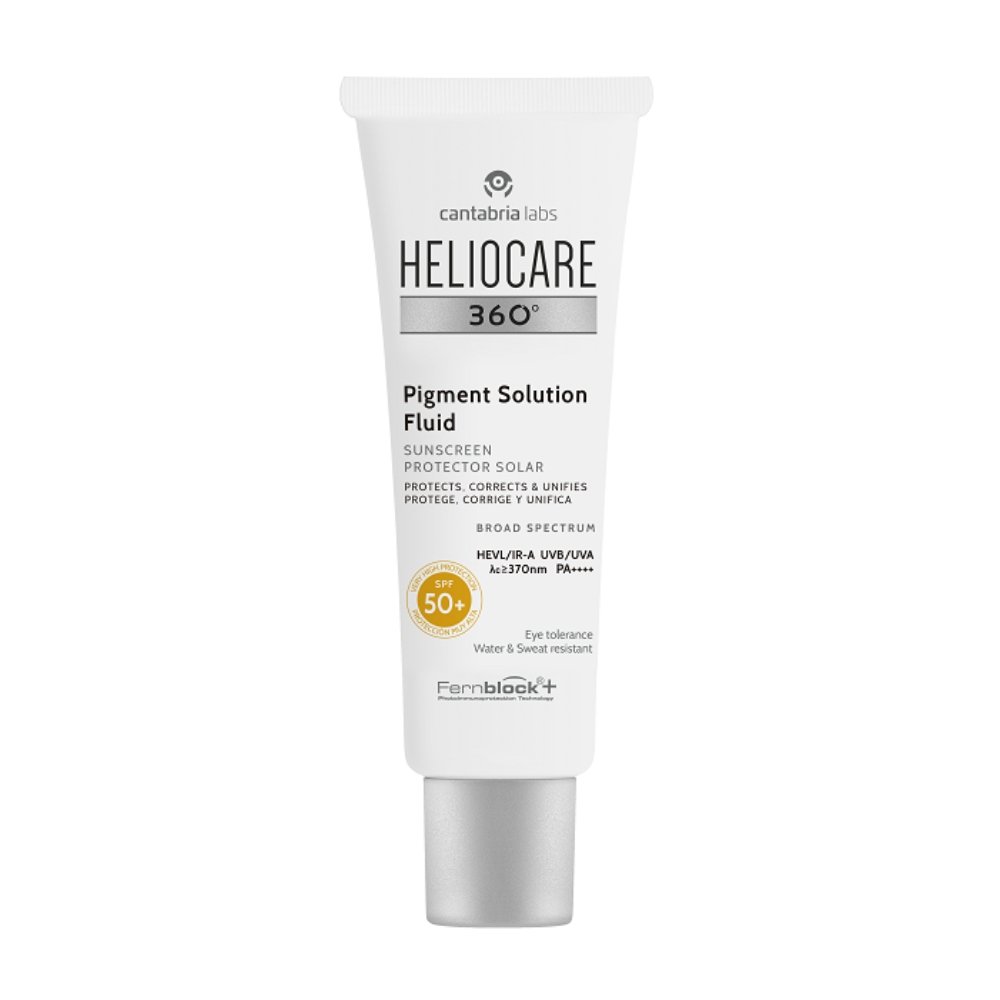 Ce fluide photoprotecteur unifiant anti-taches SPF 50+ est conçu pour tous types de peau, offrant une très haute protection solaire à large spectre contre les UVB, UVA, lumière visible (VL), infrarouge A (IR-A) et lumière bleue des écrans.Dotée de systèmes antipollution et dépigmentant, cette formule aide à prévenir et à corriger les taches pigmentaires et les signes d’hyperpigmentation. Des pigments nude viennent unifier le teint pour un rendu naturel.Enrichie en Fernblock®, technologie brevetée d’origine végétale, elle prévient et répare les dommages causés par le soleil, optimise l’activité de la vitamine D, renforce la protection solaire et en prolonge l’efficacité.Sa texture ultralégère, convenant à tous types de peau, offre un fini soyeux, doux et naturellement lumineux.BénéficesProtection à large spectre (SPF50, PA++++, lumière visible et infrarouge)AntioxydantPrévient et réduit les taches solairesNon comédogèneHypoallergéniqueTesté sous contrôle dermatologique et ophtalmologiqueActifs clésCombinaison optimale et stable de filtres solairesTechnologie Fernblock®Tinosorb A2B et Oxyde de Fer pour renforcer la protection contre les UVA et la lumière visibleSystème dépigmentant : Niacinamide et Acide EllagiqueSystème antipollutionRésultatsPrévention et correction des taches pigmentaires et des signes d’hyperpigmentationUnification du teint pour un rendu naturel grâce aux pigments nudePrévention et réparation des dommages causés par le soleilOptimisation de l’activité de la vitamine DRenforcement et prolongation de l’efficacité de la protection solaire