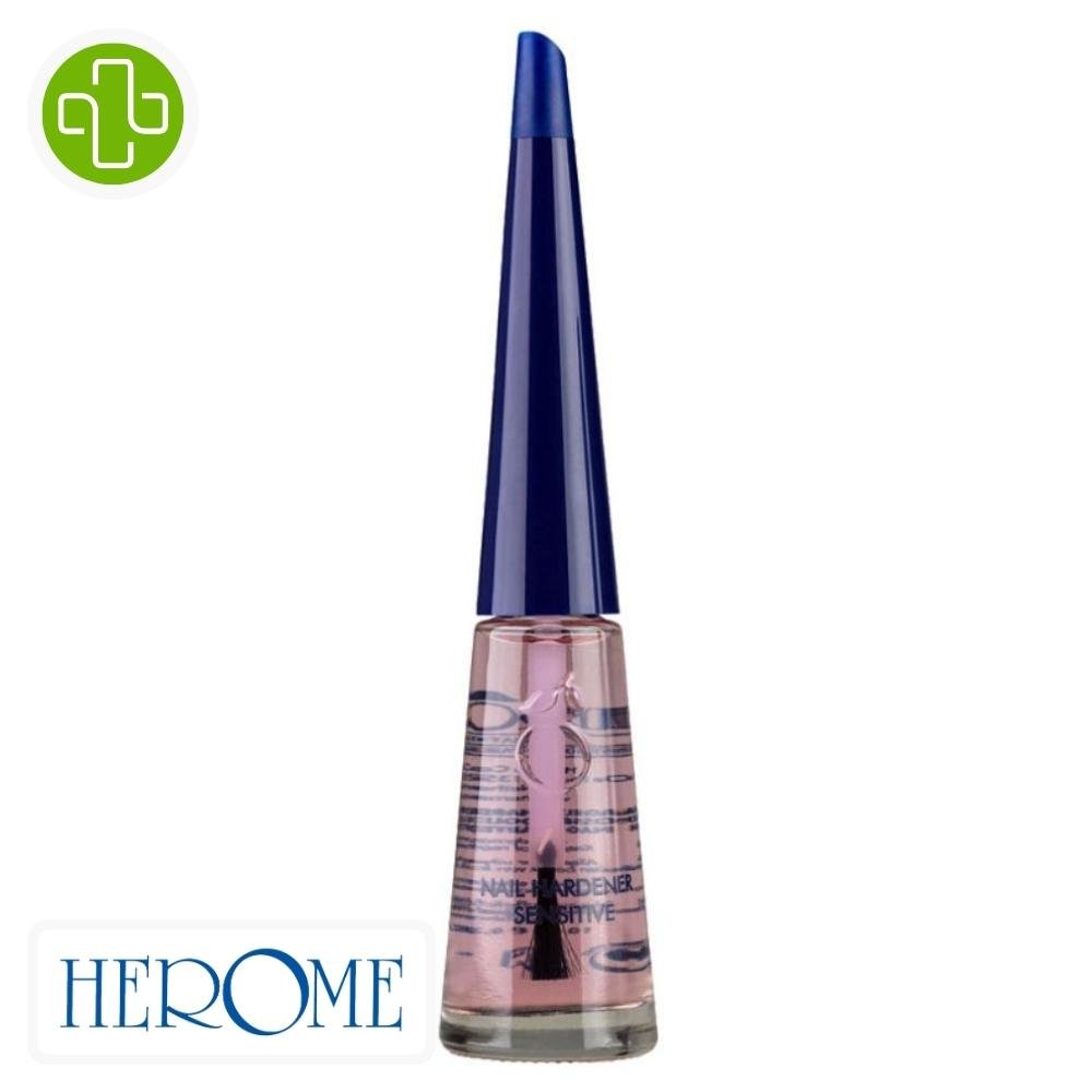 Le Herome Nail Hardener Sensitive est une solution conçue pour répondre aux besoins des personnes ayant des ongles fragiles et sensibles. Ce produit vise à améliorer la condition générale des ongles, en les fortifiant et en stimulant leur croissance. Sa formule unique, enrichie en ingrédients spécifiques, offre une approche douce mais efficace pour le soin des ongles, permettant une utilisation fréquente sans risque d’irritation. Il est présenté comme un traitement idéal pour les problèmes légers des ongles.BénéficesAméliore la condition des onglesRenforce les onglesFavorise la croissance des onglesConvient aux ongles sensiblesPeut être utilisé aussi souvent que souhaitéActifs clésKératine: Protéine fibreuse qui contribue à améliorer et à renforcer la structure de l’ongle, favorisant ainsi sa résistance et sa croissance.Extrait de tournesol: Ingrédient nutritif qui hydrate et revitalise l’ongle, contribuant à sa santé et à sa brillance.Camomille: Agent apaisant qui calme et protège l’ongle et la peau environnante, réduisant ainsi les irritations potentielles.Acides aminés fortifiants: Soutiennent une croissance saine et renforcent la structure de l’ongle.Conseils d’utilisationAppliquer une couche de Nail Hardener Sensitive le premier jour.Appliquer une deuxième couche le deuxième jour.Le troisième jour, retirer les couches avec le Caring Nail Polish Remover et appliquer une nouvelle couche.Répéter ces étapes pendant une cure de 30 jours, quatre fois par an pour une amélioration structurelle des ongles.