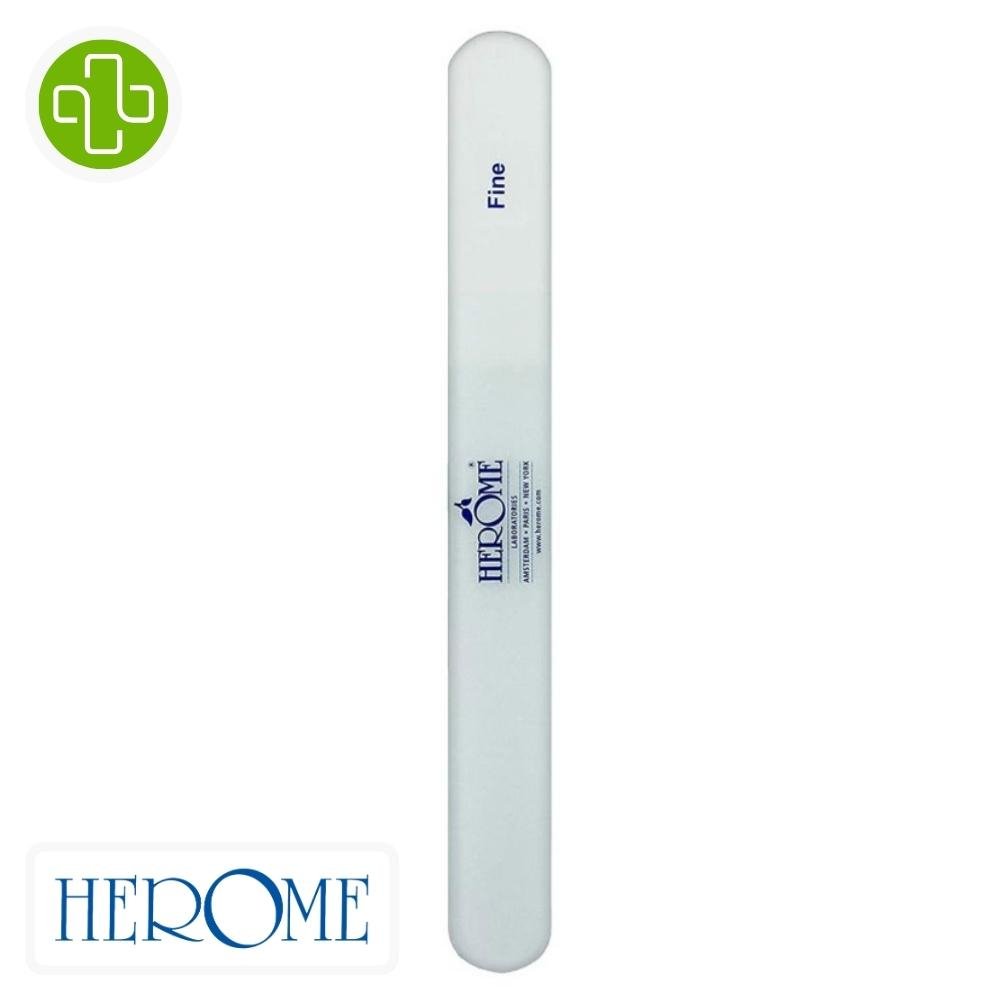La lime à ongles en verre Herome est conçue pour offrir une solution durable et efficace pour l’entretien des ongles. Contrairement aux limes traditionnelles, sa composition en verre de haute qualité permet de limer les ongles en douceur, sans créer de microfissures susceptibles de provoquer le dédoublement. La structure unique du verre contribue à sceller la plaque de l’ongle, renforçant ainsi sa résistance et prévenant les cassures. Adaptée à tous les types d’ongles, cette lime est un outil essentiel pour maintenir des ongles sains et bien entretenus.BénéficesPrévient les accroches, le dédoublement et les fissures des ongles.Scelle la plaque de l’ongle pour une meilleure protection.Convient à tous les types d’ongles.Alternative durable aux limes traditionnelles.Actifs clésVerre de haute qualité : Offre une surface de limage douce et précise, minimisant les dommages à la structure de l’ongle.Structure micro-abrasive : Permet de limer les ongles en douceur tout en scellant les bords pour prévenir le dédoublement.Conseils d’utilisationTenir la lime à ongles légèrement et la placer à un angle de 45 degrés sous l’ongle.Limer l’ongle avec un mouvement fluide et arrondi, en allant du côté vers le centre.Éviter les mouvements de va-et-vient qui peuvent endommager les plaques de l’ongle.La pression exercée sur la lime détermine l’intensité du limage.Nettoyer régulièrement la lime, elle peut être nettoyée au lave-vaisselle.