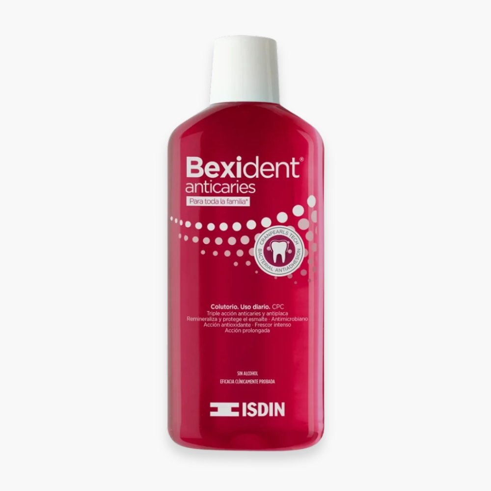 Découvrez ISDIN – Bexident Bain de Bouche Anti-Caries au CPC – 500ml au prix de 71 au Maroc.Le Bain de Bouche Anticaries Bexident est un soin d’hygiène bucco-dentaire quotidienne conçu pour offrir une protection complète contre les caries pour toute la famille. Ce produit est particulièrement indiqué pour prévenir l’apparition et la récidive des caries, la formation de plaque bactérienne et pour maintenir le pH buccal.Sa formule innovante repose sur la technologie Cranpearls Tech, une combinaison synergique de Fluorure de sodium et d’Extrait de Canneberge, qui confère au bain de bouche une triple action : anticaries, antiseptique et anti-plaque. Ce soin est formulé sans alcool et sans gluten, garantissant une utilisation douce et sécurisée.BénéficesProtection quotidienne et complète contre les caries.Triple action : anticaries, antiseptique et anti-plaque.Aide à prévenir la colonisation des bactéries dans la cavité buccale.Empêche l’adhérence des bactéries sur les dents, prévenant la formation de plaque.Contribue à maintenir un pH sain de la cavité buccale.Convient à l’hygiène bucco-dentaire de toute la famille.Actifs clésCranpearls Tech : Technologie innovante combinant les actifs suivants :Fluorure de sodium (226 ppm F-) : Agent essentiel pour la prévention des caries.Extrait de Canneberge : Composant naturel (riche en proanthocyanidine) avec un effet antiadhésif qui combat la colonisation bactérienne.Chlorure de cétypyridinium (CPC) : Actif reconnu pour son rôle antiseptique et anti-plaque.RésultatsOffre une triple action anti-cavité prouvée.Contribue à maintenir des gencives saines et des dents protégées.Conseil d’utilisationUtiliser le bain de bouche deux ou trois fois par jour, idéalement après chaque brossage.Remplir le gobelet doseur jusqu’à la ligne marquée (15 ml).Rincez-vous la bouche sans diluer le produit, en rinçant vigoureusement pendant 1 minute.S’assurer que le produit atteint toutes les zones, notamment entre les dents.Ne pas rincer à l’eau et éviter de manger ou boire pendant 30 minutes après utilisation.