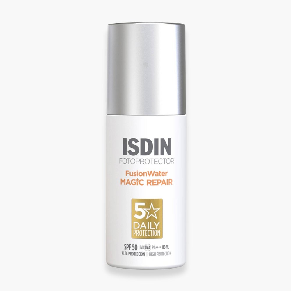 Découvrez ISDIN – Fotoprotector Fusion Water Magic Repair Solaire Invisible SPF50 – 50ml au prix de 330 au Maroc.Le Fotoprotector Fusion Water MAGIC Repair SPF 50 est un soin solaire facial quotidien qui va au-delà de la simple protection. Il intègre la technologie Fusion Water ultra-légère pour une absorption immédiate et un fini invisible sur la peau. Conçu avec une triple action anti-photovieillissement, il protège la peau des dommages solaires et de la pollution urbaine, tout en aidant à réparer les altérations cellulaires dues à l’exposition et en régénérant les signes visibles de l’âge.Ce photoprotecteur est idéal pour les peaux matures ou pour la prévention des premiers signes de l’âge, offrant une très haute protection UV (SPF 50) sans compromis sur le confort. Sa formule enrichie en peptides et en acide hyaluronique maintient l’hydratation, améliore l’élasticité et réduit l’apparence des rides. Sa tolérance optimale, y compris la technologie Safe-Eye, en fait un produit indispensable pour un usage quotidien.BénéficesProtection très haute SPF 50 à large spectre contre les rayons UVA, UVB, HE-VL et infrarouges.Triple action anti-photovieillissement : Protège des UV et de la pollution, Répare les dommages solaires et Régénère la peau.Réduit les rides et combat la perte de collagène.Améliore l’éclat, l’hydratation et l’élasticité de la peau.Texture ultra-légère en phase aqueuse, avec absorption immédiate et fini invisible.Safe-Eye Technology : formule testée sous contrôle ophtalmologique, qui n’irrite pas les yeux.Non comédogène, Oil-free, sans résidu gras, et résistant à l’eau.Actifs clésAcide Hyaluronique : Agent hydratant intense qui repulpe et maintient la souplesse de la peau.Peptides (ou Composants Réparateurs) : Stimulent la régénération cellulaire et aident à réparer les signes visibles des dommages solaires accumulés.Coenzyme Q10 (Stimulateur de cycle naturel) : Améliore l’éclat et le cycle de régénération de la peau.Vitamine E : Antioxydant puissant qui lutte contre le stress oxydatif et le vieillissement prématuré.Filtres solaires avancés : Garantissent une protection très haute et photostable contre les rayons nocifs du soleil.RésultatsProtection UV élevée SPF 50 testée cliniquement pour prévenir efficacement les dommages solaires.Action anti-âge visible grâce à la régénération cellulaire et à la réduction des rides.97 % des utilisateurs affirment que le produit n’irrite pas les yeux.93 % des utilisateurs confirment qu’il ne laisse aucun résidu gras sur la peau.Conseil d’utilisationAppliquer généreusement sur le visage et le cou, sur peau sèche ou humide, au moins 30 minutes avant l’exposition au soleil.Renouveler l’application toutes les 2 heures ou plus fréquemment.Réappliquer impérativement après avoir transpiré, nagé ou s’être séché avec une serviette.Une quantité insuffisante de produit réduit de manière significative l’indice de protection indiqué.Convient pour un usage quotidien et peut être utilisé comme base de maquillage.