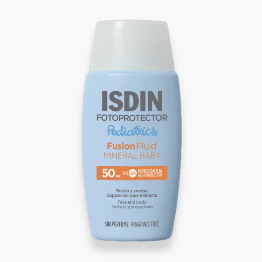 Photoprotecteur 100 % minéral formulé pour la peau fragile des bébés et enfants (dès 6 mois). Très haute protection solaire SPF 50+ contre le rayonnement UV indirect. Texture Fusion Fluid ultralégère, absorption immédiate, très résistante à l’eau et aux frictions. Hypoallergénique, convient aux peaux atopiques et intolérantes aux filtres chimiques.