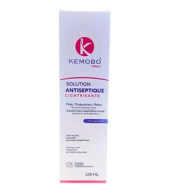 Découvrez KEMOBO – Solution Antiseptique – 125ml au prix de 100 au Maroc.