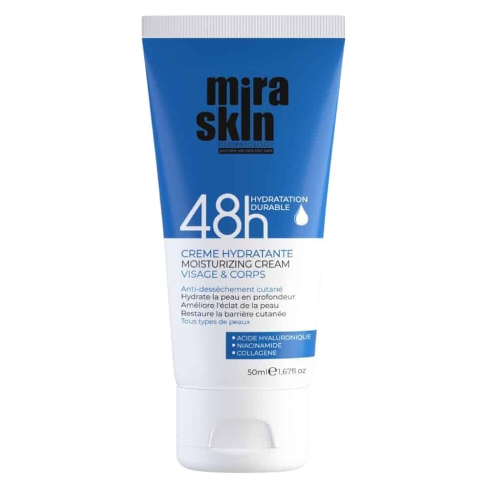 Découvrez MIRASKIN – Crème Hydratante 48h – 50ml au prix de 137 au Maroc.Découvrez la Crème Hydratante Visage et Corps Mira Skin, spécialement élaborée pour répondre aux besoins des peaux sèches à très sèches et sensibles. Ce soin intensif offre une hydratation profonde et durable pendant 48 heures, revitalisant et nourrissant la peau en profondeur. Sa formule légère et non grasse est enrichie en acide hyaluronique, niacinamide, et collagène pour une efficacité optimale.L’acide hyaluronique assure une hydratation profonde, tandis que le collagène hydrolysé contribue à améliorer la texture et l’éclat de la peau.Un véritable concentré d’actifs pour une peau visiblement plus hydratée et rajeunie.