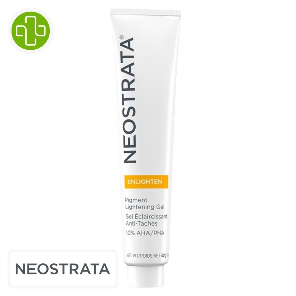 Le Neostrata Enlighten Gel Éclaircissant Anti-Taches est un soin conçu pour agir sur les hyperpigmentations cutanées. Sa formulation vise à la fois à réduire les taches pigmentaires déjà présentes et à limiter l’apparition de nouvelles. Grâce à un complexe d’acides AHA/PHA, ce gel favorise l’exfoliation douce de la peau, stimulant ainsi son renouvellement cellulaire. L’utilisation régulière de ce gel contribue à unifier le teint et à améliorer l’aspect général de la peau.BénéficesRéduction des taches pigmentaires existantes.Prévention de l’apparition de nouvelles taches pigmentaires.Exfoliation douce pour un renouvellement cutané amélioré.Amélioration de la douceur et de la luminosité de la peau.Resserrement des pores.Prévention de la formation d’acné.Protection antioxydante.Actifs clésAcide Glycolique et Citrique (5%) : Exfoliants, ils favorisent le renouvellement cellulaire en éliminant les cellules mortes à la surface de la peau.Gluconolactone et Acide Lactobionique (5%) : Contribuent à réduire la production de mélanine, pigment responsable des taches brunes.B-Resorcinol (0,1%) : Agit en ralentissant la formation de pigmentation cutanée.Acide Kojique (1%) : Limite la production de mélanine, aidant ainsi à prévenir l’apparition de nouvelles taches.Extrait de Réglisse : Possède des propriétés éclaircissantes qui aident à atténuer les taches pigmentaires.Vitamine C : Antioxydant puissant, elle contribue à illuminer et éclaircir la peau en neutralisant les radicaux libres.Conseils d’utilisationAppliquer le gel NeoStrata Enlighten Pigment Lightening chaque soir pendant 2 semaines directement sur les zones pigmentées.Masser délicatement une petite quantité de produit sur la peau propre et sèche.Si la peau tolère bien, augmenter la fréquence d’application matin et soir.Il est recommandé d’appliquer une crème avec un facteur de protection solaire après l’application du gel le matin.