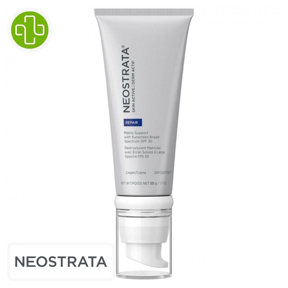 Matrix Support est une crème de jour anti-âge spécialement formulée pour les peaux matures. Elle combine des ingrédients actifs pour améliorer la texture de la peau, uniformiser le teint et favoriser une apparence plus ferme et saine. La formule contient du rétinol et du NeoGlucosamine, associés à une protection solaire à large spectre SPF 30. Cette crème de jour de texture moyenne vise à cibler la matrice d’hydratation de la peau, contribuant à atténuer les rides visibles, le manque de fermeté et les irrégularités de pigmentation, tout en renouvelant la texture cutanée. Elle s’intègre dans une routine complète pour une action anti-âge globale.BénéficesAméliore la texture de la peau.Uniformise le teint.Favorise une peau d’apparence plus ferme.Protège contre les dommages causés par le soleil grâce à un SPF 30 à large spectre.Atténue les rides visibles.Réduit les irrégularités de la pigmentation.Actifs clésNeoGlucosamine: Un sucre aminé non acide qui exfolie en douceur pour favoriser le renouvellement naturel de la peau. Il contribue également à atténuer l’apparence des décolorations, du teint irrégulier et des taches de vieillesse. De plus, il est un élément constitutif de l’acide hyaluronique naturel de la peau et aide à promouvoir le raffermissement visible de la peau.Retinol: Une forme de vitamine A, qui aide visiblement à lisser les rides et à atténuer l’apparence des pigments irréguliers. Le rétinol augmente le renouvellement cellulaire de la peau, éliminant ainsi les cellules ternes et révélant une peau plus saine et plus éclatante.Avobenzone (3%), Octinoxate (7.5%), Octisalate (5.0%): Filtres solaires protégeant la peau contre les rayons UVA et UVB.RésultatsAprès 16 semaines d’utilisation de Matrix Support dans le cadre d’un régime SKIN ACTIVE :98% ont constaté une texture de peau plus lisse.95% ont constaté une peau visiblement plus ferme et plus éclatante.91% ont constaté des rides moins visibles.79% ont constaté des taches brunes moins apparentes.Conseils d’utilisationAppliquer quotidiennement sur le visage et le cou nettoyés.Masser délicatement jusqu’à absorption complète.Utiliser en complément d’autres produits de la gamme SKIN ACTIVE pour des résultats optimaux.Réappliquer un écran solaire en cas d’exposition prolongée au soleil.