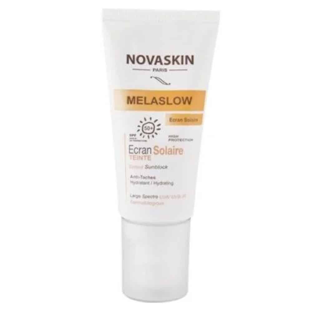 Découvrez NOVASKIN – Melaslow Écran Solaire Teinté Anti-taches SPF50+ – 50ml au prix de 166 au Maroc.Le Novaskin Melaslow Ecran Solaire Anti-Taches Teinté est un soin novateur spécialement conçu pour offrir une très haute protection aux femmes tout en agissant comme un soin anti-taches teinté. Cette formule unique combine l’efficacité d’une protection solaire avancée avec des agents anti-taches, offrant ainsi une double action pour préserver la beauté de la peau.Caractéristiques du Produit:Protection Avancée: Bénéficiez d’une très haute protection solaire, essentielle pour prévenir les dommages causés par les rayons UV. Cette protection est particulièrement adaptée pour les femmes exposées au soleil.Soin Anti-Taches: La formule est enrichie en agents anti-taches, offrant un soin ciblé pour atténuer les taches pigmentaires et unifier le teint. Un moyen efficace de prendre soin de votre peau tout en la protégeant.Application Facile: Appliquez généreusement le produit sur le visage pour assurer une couverture optimale. La texture teintée ajoute une touche subtile qui unifie le teint.Répétition de l’Application: Pour maintenir une protection efficace tout au long de l’exposition au soleil, répétez régulièrement l’application. Cela garantit une barrière continue contre les effets néfastes du soleil.Conseils d’Application:Quantité Généreuse: Appliquez généreusement la crème sur le visage pour une protection optimale. Assurez-vous de couvrir toutes les zones exposées.Répétition Fréquente: Répétez l’application régulièrement, surtout après la baignade ou en cas de transpiration excessive, pour maintenir une protection continue.En choisissant le Novaskin Melaslow Ecran Solaire Anti-Taches Teinté, vous combinez la beauté d’un teint unifié avec une protection solaire avancée, offrant ainsi à votre peau une défense complète contre les rayons UV et les taches pigmentaires. Adoptez cette solution tout-en-un pour une peau éclatante et protégée.