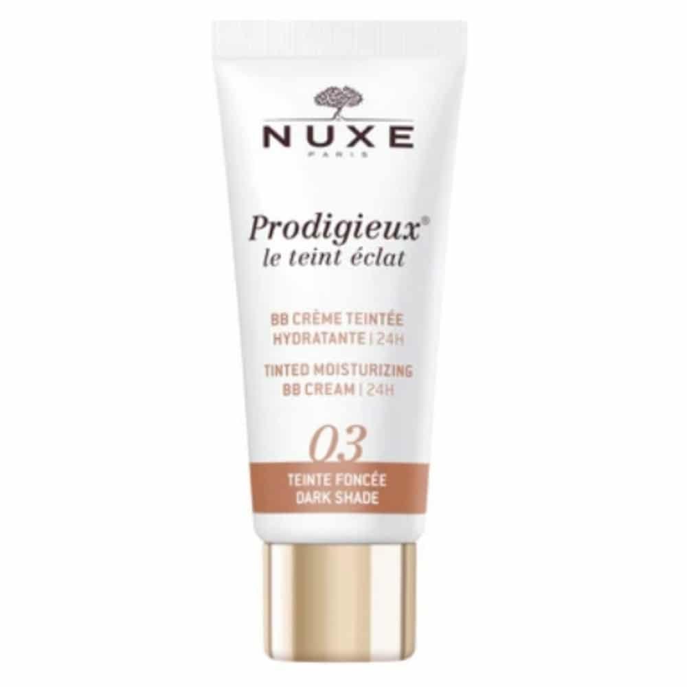 La BB Crème Teintée Hydratante en teinte foncée est conçue pour uniformiser le teint et hydrater la peau. Sa texture légère et fondante, enrichie en huile d’amande douce, offre une couvrance modulable grâce à une association de pigments d’origine naturelle. Ce soin perfecteur de teint contribue à lisser la peau et à illuminer le visage, tout en assurant une hydratation continue pendant 24 heures. La formule est non comédogène et formulée à partir de 97% d’ingrédients d’origine naturelle.BénéficesHydrate la peau.Unifie le teint.Lisse la peau.Illumine le visage.Procure un effet bonne mine.Offre une couvrance modulable.Actifs clésHuile d’amande douce : Cette huile végétale est reconnue pour ses propriétés hydratantes et adoucissantes. Elle aide à maintenir l’hydratation de la peau et à améliorer son élasticité.Pigments d’origine naturelle : Ces pigments permettent d’unifier le teint et de masquer les imperfections, tout en offrant un rendu naturel.Résultats94% des utilisatrices constatent une hydratation et une illumination de la peau immédiatement après application.94% des utilisatrices observent un lissage de la peau immédiatement après application.94% des utilisatrices remarquent un effet « bonne mine » immédiatement après application.97% des utilisatrices apprécient le fini naturel immédiatement après application.Conseils d’utilisationPrélever une petite quantité de BB crème.Répartir par petites touches sur le centre du visage (front, nez, menton).Étirer progressivement la texture vers l’extérieur du visage et le cou pour éviter les démarcations.Pour un résultat moins couvrant, mélanger une petite quantité de BB crème avec votre crème de jour NUXE.Appliquer comme une crème, de l’intérieur vers l’extérieur du visage.Pour ajuster la couvrance, utiliser 1 goutte pour un effet naturel, 1 noisette pour un teint unifié, et 2 noisettes pour plus d’éclat.Agiter avant emploi.