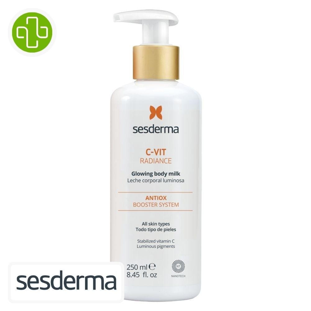 Découvrez le Lait Corporel C-Vit Radiance de Sesderma, votre allié quotidien pour une peau visiblement plus jeune et lumineuse. Conçu pour hydrater et illuminer les peaux ternes, ce soin offre une dose puissante de vitamine C stable, reconnue pour son action antioxydante. Il combat efficacement le manque de vitalité, unifie le teint et restaure l’éclat naturel de votre corps. Sa formule soyeuse, rapidement absorbée, laisse la peau nourrie, saine et dotée d’une lueur instantanée grâce à ses pigments éclatants. Son parfum délicieux d’orange rend l’application addictive.BénéficesIllumine et revitalise les peaux ternes, leur apportant vitalité et un aspect uniforme.Rend la peau douce, rayonnante et éclatante.Intensifie et rehausse le bronzage pour un effet bonne mine.Offre un effet non collant grâce à ses pigments lumineux qui masquent les imperfections.Assure une hydratation multicouche et intensive.Agit comme un puissant antioxydant, s’opposant à l’action des radicaux libres et aidant à stopper le vieillissement prématuré.Améliore la douceur et l’élasticité de la peau en stimulant la synthèse de collagène.Combat les signes de fatigue et aide à prévenir l’apparition des rides.Formulé avec des principes actifs encapsulés dans des liposomes pour une pénétration plus profonde et une efficacité accrue.Actifs clésVitamine C stable: Puissant antioxydant et illuminateur, elle aide à combattre le vieillissement prématuré et à unifier le teint.Huile de sésame: Reconnue pour ses propriétés nourrissantes, elle contribue à l’hydratation de la peau.Acide hyaluronique: Offre une hydratation intense et aide à maintenir la souplesse de la peau.Pigments lumineux: Reflètent la lumière pour un éclat instantané et masquent visuellement les imperfections.Conseils d’utilisationAppliquer sur une peau propre en massant doucement jusqu’à absorption complète.Insister particulièrement sur les zones que vous souhaitez accentuer (jambes, bras, décolleté).Pour booster son effet, il est recommandé de réaliser une exfoliation préalable avec ABRADERMOL une fois par semaine.Précautions d’emploiContient de la vitamine A. Tenir compte de votre apport quotidien avant utilisation.