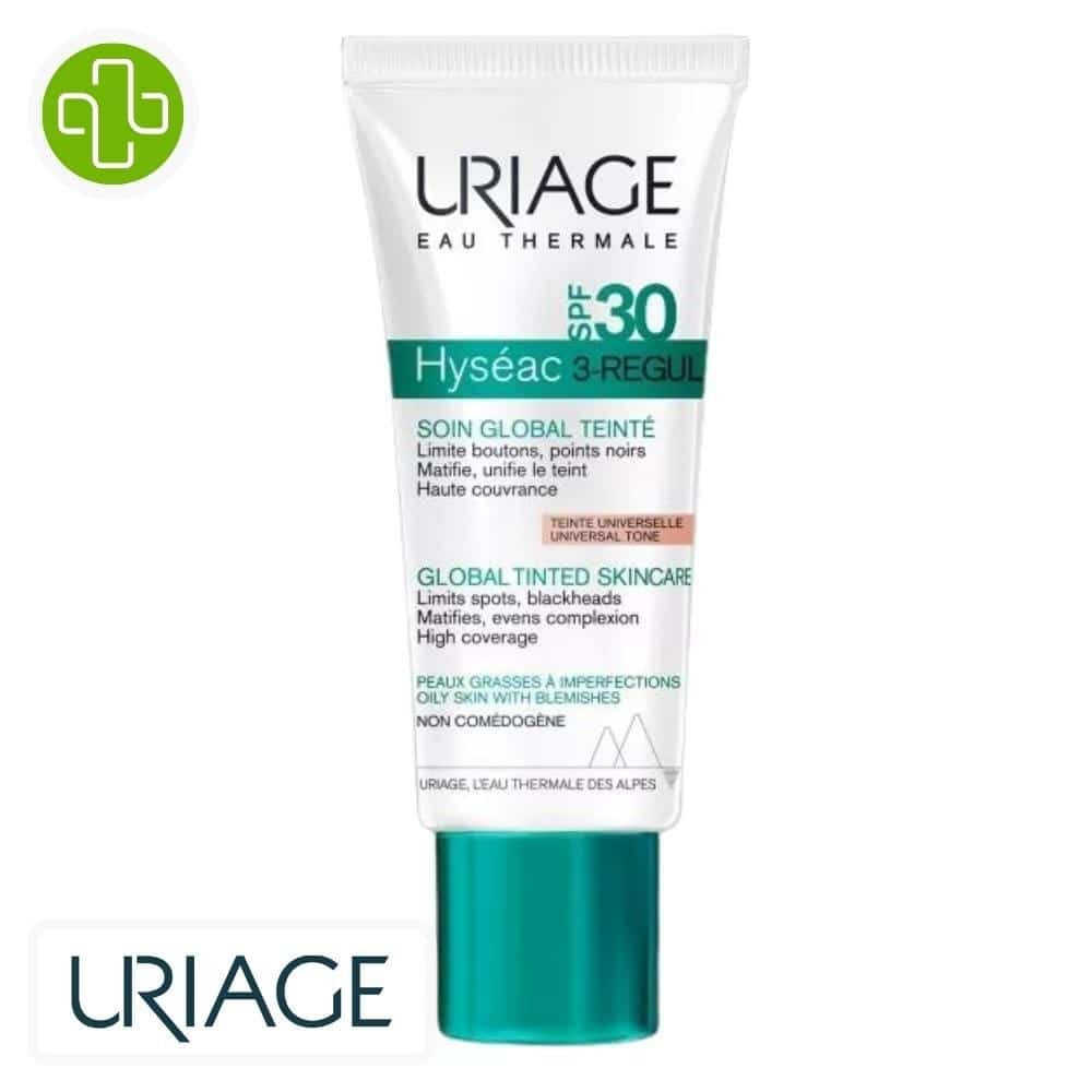 Le Soin global teinté SPF30 HYSEAC est formulé pour répondre aux besoins des peaux grasses à tendance acnéique. Ce soin « tout en un » agit sur les imperfections telles que les boutons et les points noirs, tout en offrant une protection solaire contre les UVA et UVB. Il contribue également à unifier le teint et à matifier la peau, offrant ainsi une solution complète pour une peau visiblement plus saine et protégée des effets néfastes du soleil et des radicaux libres. Sa texture légère permet une application facile et un fini poudré non gras.BénéficesAide à réduire les boutons et les points noirs.Unifie le teint et matifie la peau.Affine le grain de peau.Protège la peau des UVA et UVB, limitant l’effet rebond de l’acné et l’apparition des marques liées au soleil.Actifs clésAHA (Acide Lactique) : Exfolie la peau pour affiner le grain et favoriser le renouvellement cellulaire.Acide Salicylique : Possède des propriétés kératolytiques, aidant à désincruster les pores et à réduire les imperfections.Filtres UVA-UVB : Protègent la peau des rayons UVA et UVB, prévenant ainsi les dommages causés par le soleil.Eau Thermale d’Uriage : Apaise et hydrate la peau, renforçant sa barrière cutanée.RésultatsDans le cadre d’un test d’usage réalisé sur 31 volontaires pendant 56 jours :97% ont constaté une réduction des brillances.81% ont observé un teint plus unifié.Une réduction de 48% des imperfections a été observée par scorage clinique.Conseils d’utilisationAppliquer le matin sur une peau préalablement nettoyée et séchée.Éviter le contact avec les yeux.Ne pas utiliser pendant la grossesse et l’allaitement.
