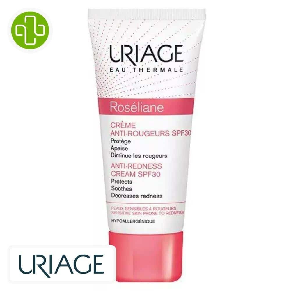 La crème Roséliane SPF30 est un soin dermo-cosmétique à texture onctueuse et non grasse, spécifiquement développé pour la prise en charge des peaux sensibles présentant des rougeurs. Ce dispositif assure une triple action en apaisant les sensations d’échauffement, en limitant la réactivité vasculaire et en protégeant l’épiderme des agressions environnementales. Sa formulation intègre une haute protection solaire pour prévenir l’aggravation des rougeurs induite par les rayonnements ultraviolets. Dès la première application, le soin restaure le confort cutané et laisse la peau souple et hydratée de manière durable.BénéficesAtténuation durable des sensations de tiraillements et d’échauffements cutanés.Réduction visible de l’intensité des rougeurs installées.Protection à large spectre contre les rayonnements UVA et UVB.Restauration et renforcement de l’intégrité de la barrière cutanée.Apport d’un confort immédiat et d’une hydratation profonde.Actifs clésEau Thermale d’Uriage : reconnue pour ses capacités hydratantes, apaisantes et protectrices de la barrière cutanée.Cérasterol-2F : complexe restructurant agissant sur la barrière épidermique pour un confort durable.Complexes SK5R et TLR2-REGUL : biotechnologies brevetées régulant les fonctions enzymatiques et les voies inflammatoires cutanées.Extraits de ginseng et d’algues rouges : agents végétaux contribuant à la normalisation de la microcirculation superficielle.Système filtrant SPF30 : écrans solaires assurant une photoprotection quotidienne efficace.Résultats mesurés93 % de diminution des rougeurs après 28 jours d’application biquotidienne, selon une étude clinique sous contrôle dermatologique réalisée sur 40 sujets.Conseils d’utilisationAppliquer uniformément le soin le matin sur l’ensemble du visage préalablement nettoyé.En relais nocturne, privilégier l’application de la Crème Anti-rougeurs Roséliane sans indice de protection.