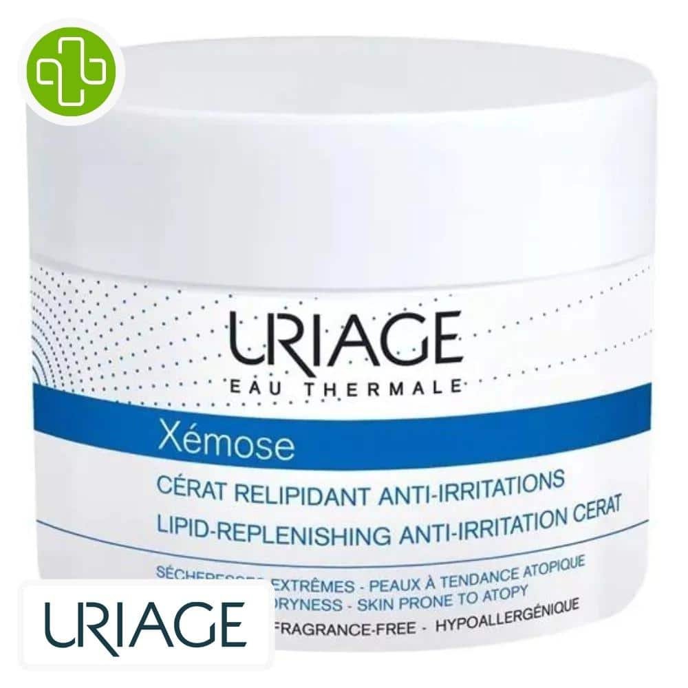 Le XÉMOSE C8+ Cérat Relipidant Anti-irritations est un soin émollient conçu pour répondre aux besoins des peaux très sèches et sujettes aux irritations. Sa formulation spécifique vise à nourrir intensément, apaiser les sensations de démangeaisons et protéger la peau durablement. Il contribue à restaurer la barrière cutanée, jouant un rôle essentiel dans le maintien de l’hydratation et la protection contre les agressions extérieures. Ce cérat est adapté pour une utilisation sur le visage et le corps, chez les bébés, les enfants et les adultes.BénéficesNourrit intensément la peau.Protège la barrière cutanée.Apaise immédiatement les sensations de démangeaisons.Apporte un confort durable.Actifs clésEau Thermale d’Uriage : Contribue à rééquilibrer la barrière microbienne de la peau.Chronoxine : Agit pour une action apaisante immédiate.Cérastérol 2F : Restaure et renforce la barrière cutanée.Complexe TLR2 Regul : Module la barrière de défense innée de la peau.Beurre de Karité (25%) : Ingrédient riche qui nourrit intensément la peau et apporte un confort immédiat.Résultats96% d’efficacité anti-grattage et 98% d’efficacité apaisante. Étude réalisée sous contrôle dermatologique sur 75 bébés et enfants. Application bi-quotidienne de Xémose Crème ou Xémose Cérat pendant 28 jours. Évaluation par le dermatologue.Conseils d’utilisationAppliquer quotidiennement sur une peau propre.Usage externe.