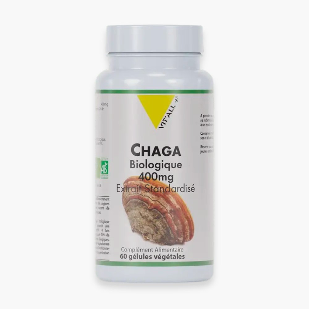 Découvrez VITALL+ – Chaga Biologique 400mg Extrait Standardisé – 60 Gélules au prix de 290 au Maroc.Le Chaga (Inonotus obliquus) est un champignon médicinal surnommé le « diamant de la forêt » ou « champignon de l’immortalité » en Asie. Il pousse sur le bouleau dans les climats froids (Sibérie, Canada, Europe du Nord) et se nourrit des nutriments de l’arbre pendant 20 à 40 ans, ce qui lui confère une richesse biochimique exceptionnelle. VIT’ALL+® sélectionne un extrait de Chaga sauvage, biologique et récolté à la main, hautement concentré (14:1) par éco-extraction aqueuse pour garantir une concentration optimale et une pureté maximale des principes actifs.BénéficesPossède la plus haute valeur antioxydante connue (valeur ORAC très élevée), aidant à protéger l’organisme contre les radicaux libres et le stress oxydatif.Contribue à soutenir les défenses immunitaires et l’efficacité du système immunitaire.Participe à l’équilibre métabolique et cardiovasculaire.Favorise la vitalité et apporte un soutien en cas de fatigue.Sa richesse en polysaccharides (dont les Bêta-glucanes) et en triterpènes fongiques en fait un puissant adaptogène naturel.Actifs clésChaga (Inonotus obliquus) – champignon : Utilisation de l’extrait du champignon sauvage, certifié biologique.Extrait Standardisé à 30% de Polysaccharides : Les polysaccharides sont des sucres complexes, dont les Bêta-glucanes, essentiels pour l’immunité. Une gélule apporte 120 mg de polysaccharides.Extrait Standardisé à 2% de Triterpènes : Les triterpènes, incluant l’inotodiol et l’acide bétulinique, sont des composés réputés pour leurs propriétés protectrices et adaptogènes.Concentration 14:1 : Indique que 1 gramme d’extrait est obtenu à partir de 14 grammes de poudre de champignon.RésultatsLe haut dosage (400 mg par gélule) et la standardisation en Polysaccharides et Triterpènes garantissent un apport stable et optimal des composés bioactifs.La qualité biologique et l’origine sauvage du champignon assurent une pureté et une efficacité supérieures, sans résidu de solvant.Conseil d’utilisationPrendre 1 gélule par jour.À ingérer de préférence au cours du repas.Précautions d’emploi : Déconseillé aux femmes enceintes.Réservé aux adultes et adolescents.Ne convient pas aux enfants de moins de 6 ans.Tenir hors de la portée des jeunes enfants. Ne pas dépasser la dose journalière indiquée.
