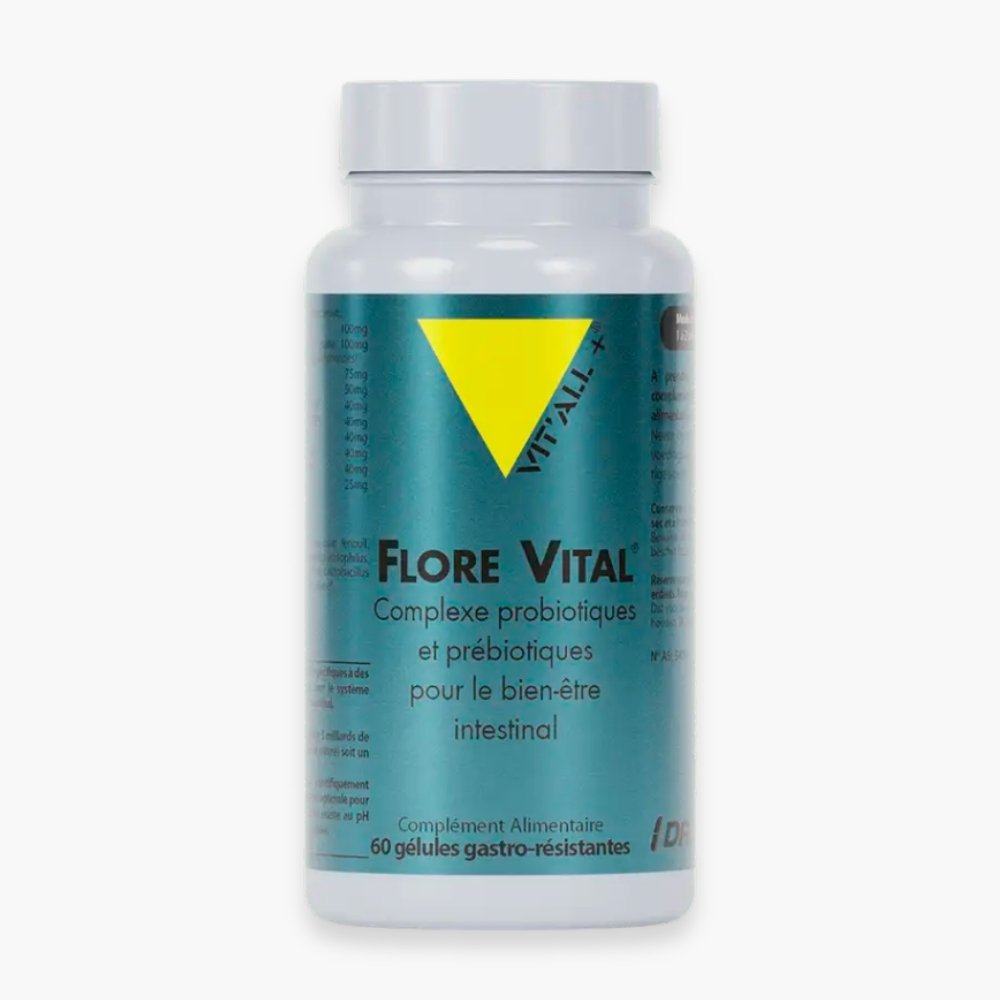 Découvrez VITALL+ – Flore Vital Complexe Probiotiques & Prébiotiques Bien-Être Intestinal – 30 Gélules au prix de 250 au Maroc.Le complément alimentaire FLORE VITAL® de VIT’ALL+® est une formule symbiotique avancée, spécialement élaborée pour le soutien de l’équilibre de la flore intestinale et du bien-être digestif. Il s’agit d’une association stratégique de 5 souches de micro-organismes scientifiquement sélectionnées (probiotiques) et de fibres solubles (prébiotiques).Cette double action contribue à optimiser la colonisation et la croissance des bactéries bénéfiques dans le côlon, jouant un rôle essentiel pour un organisme sain.BénéficesAide à l’équilibre et au maintien du microbiote intestinal grâce à un apport ciblé et optimal de micro-organismes.Les fibres solubles, reconnues pour leur douceur, agissent comme des prébiotiques en nourrissant sélectivement les bactéries intestinales.Contribue au bien-être intestinal général et soutient le fonctionnement normal du transit.Formulation garantie sans FODMAP et sans Lactose, assurant une excellente tolérance digestive même pour les personnes sensibles.Actifs clésMicro-organismes (Probiotiques) : Chaque gélule contient 5 milliards de micro-organismes à la mise en œuvre, provenant de 5 souches spécifiquement sélectionnées. Cette concentration vise une action efficace pour la réimplantation du microbiote.Fibres Solubles Prébiotiques : Ces fibres sont intégrées pour leur rôle de support, facilitant l’environnement propice à l’activité et à la survie des souches probiotiques, maximisant ainsi leur efficacité.Enrobage Végétal DRCaps® : L’utilisation de ces gélules végétales assure une protection optimale des micro-organismes contre l’acidité de l’estomac, garantissant une libération ciblée dans l’intestin, leur lieu d’action.RésultatsContribue à la restauration et au maintien de l’équilibre de la flore intestinale, souvent perturbé par l’alimentation, le stress ou certains traitements.Permet d’améliorer le confort digestif et de réduire les désagréments gastro-intestinaux grâce à l’association d’actifs pré- et probiotiques.Sa composition sans FODMAP en fait un choix privilégié pour les individus suivant un régime spécifique ou présentant une sensibilité digestive accrue.Soutient indirectement le système immunitaire, dont une grande partie des défenses est liée à un microbiote équilibré.Conseil d’utilisationLa posologie conseillée est de 1 à 2 gélules par jour.La prise doit s’effectuer de préférence au début du repas.Restrictions : Tenir hors de la portée des jeunes enfants. Ne pas dépasser la dose journalière indiquée.