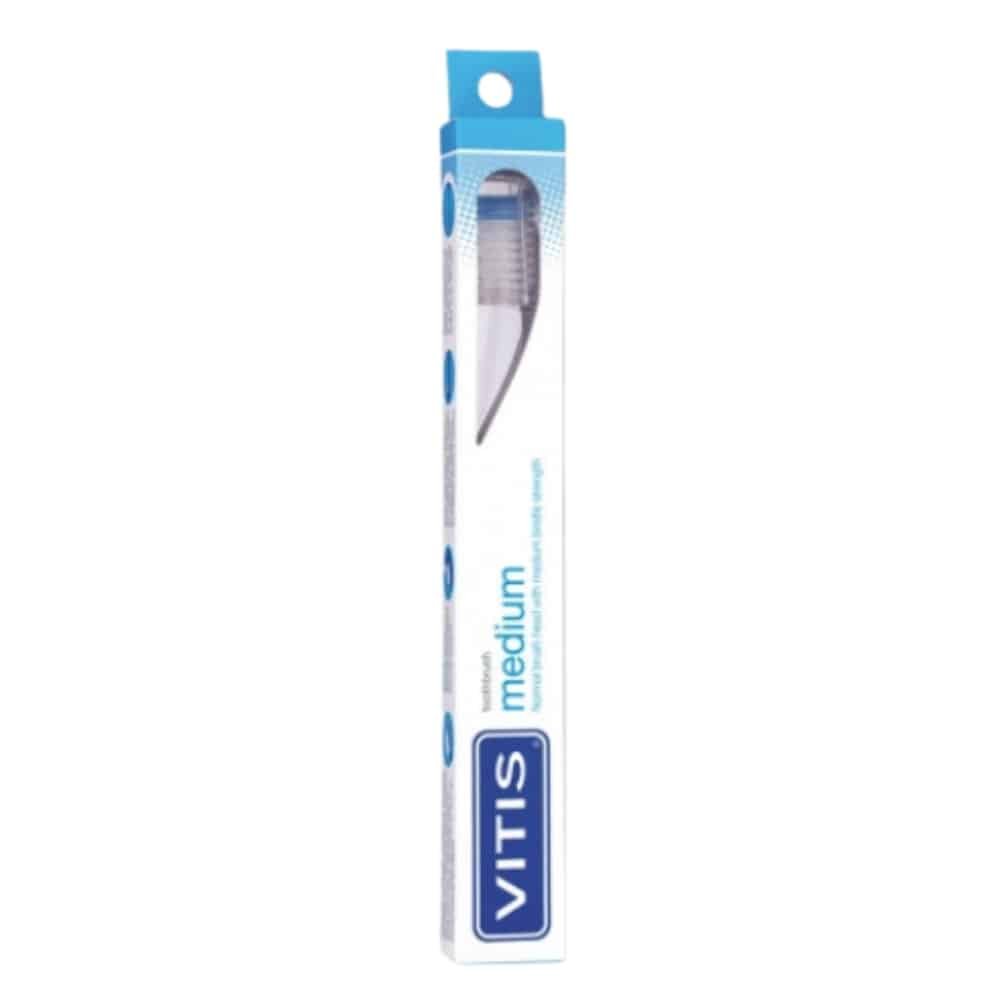 Découvrez VITIS – Brosse À Dents Medium – 1u au prix de 48 au Maroc.La Brosse à dents VITIS Medium s’adapte parfaitement aux soins quotidiens de la bouche, offrant une solution fiable pour maintenir une hygiène bucco-dentaire optimale. Équipée de poils Tynex® de résistance moyenne, cette brosse garantit un nettoyage efficace et en profondeur des dents, contribuant ainsi à une santé buccale globale.La tête de brosse à dents, de taille normale, est dotée de poils de force moyenne en Tynex® de haute qualité. Ces poils assurent un nettoyage minutieux tout en évitant une pression excessive sur les dents et les gencives. Grâce à son col flexible, la Brosse à dents VITIS Medium s’ajuste parfaitement, permettant une pression adéquate pour un nettoyage en douceur.Pour garantir une hygiène optimale, cette brosse à dents est accompagnée d’un capuchon de protection, assurant la préservation de la propreté de la brosse, que ce soit à la maison ou en déplacement.Conseils d’Application:Utilisez la Brosse à dents VITIS Medium deux fois par jour, matin et soir, comme vous le feriez avec une brosse à dents traditionnelle.Adoptez un mouvement circulaire et veillez à couvrir toutes les surfaces des dents pour un nettoyage complet.Grâce à sa conception intelligente, la Brosse à dents VITIS Medium offre une expérience de brossage agréable tout en favorisant une santé bucco-dentaire optimale.